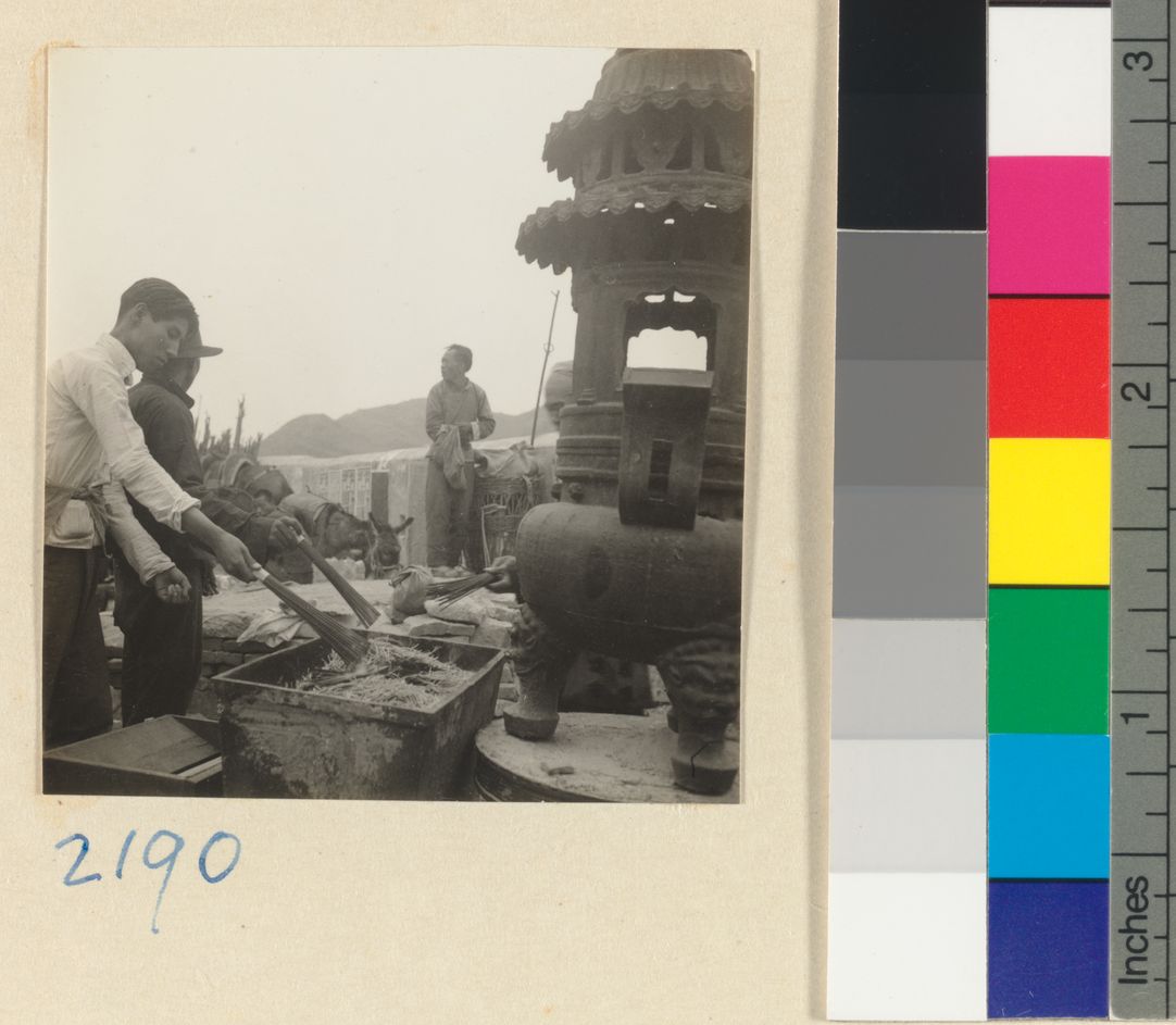 Men standing next to incense …