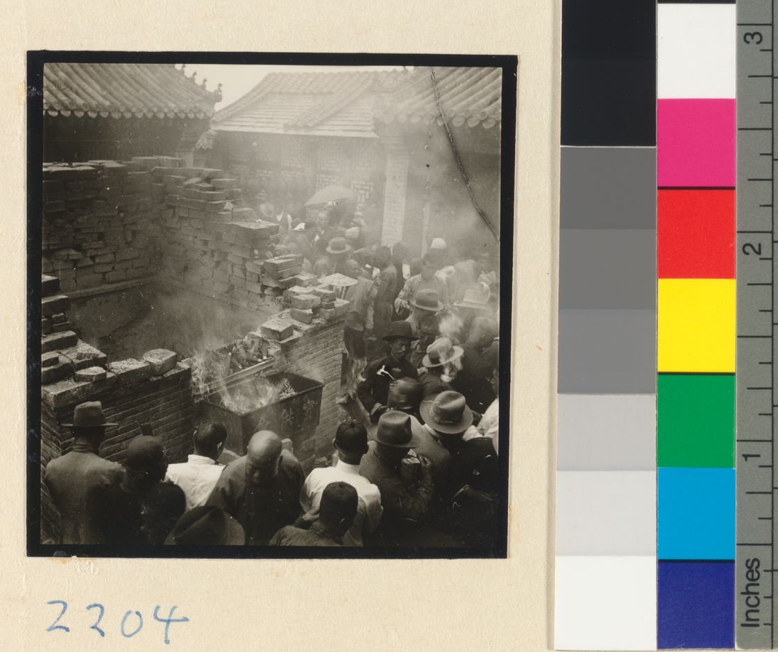 Pilgrims burning paper offeri…