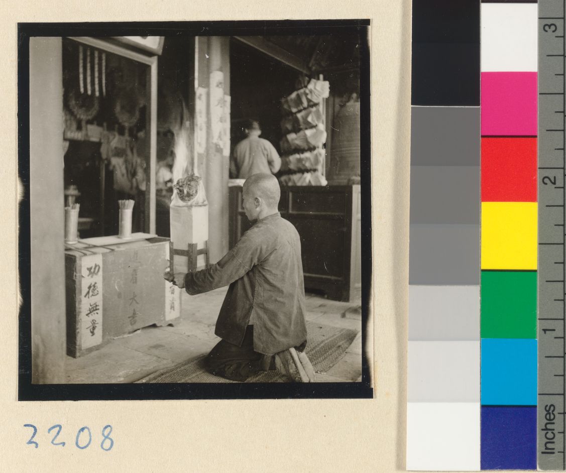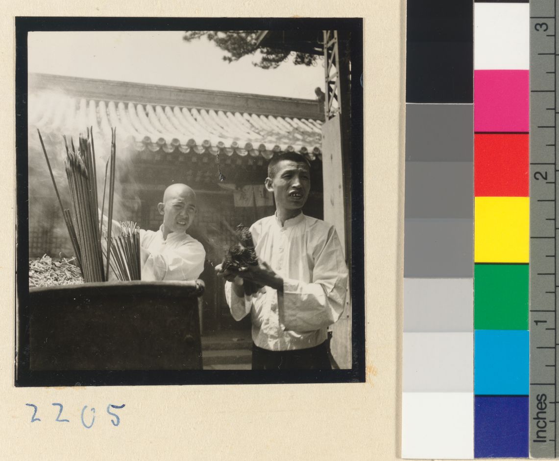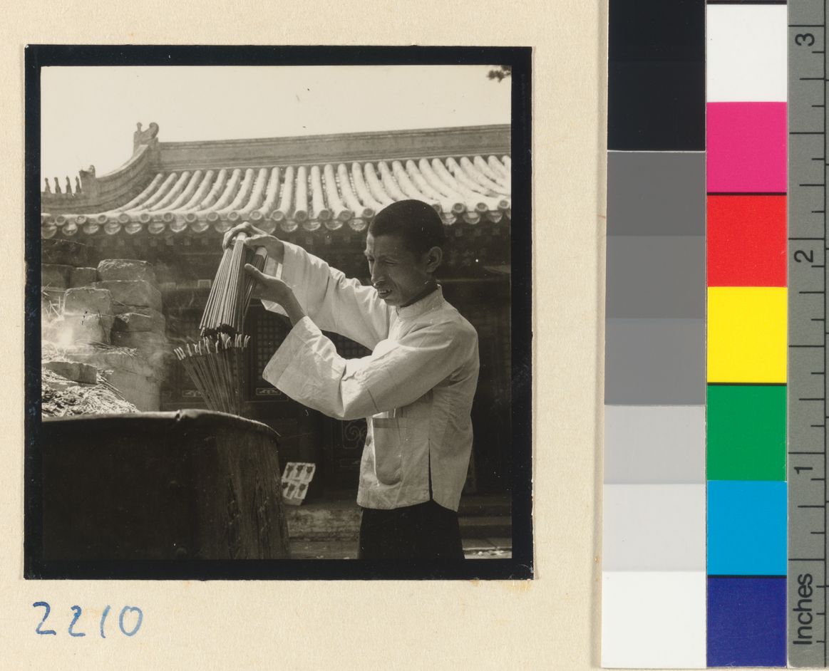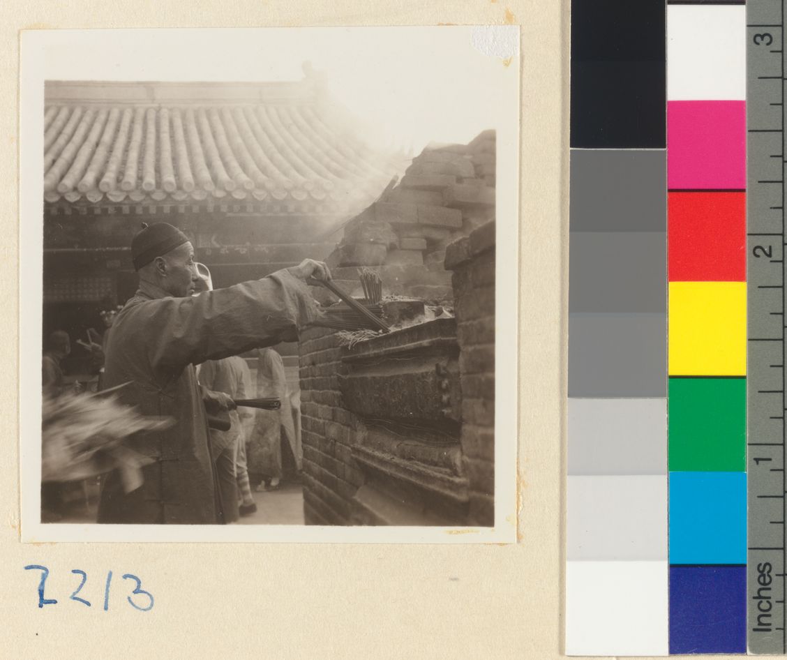 Pilgrim lighting incense at a…