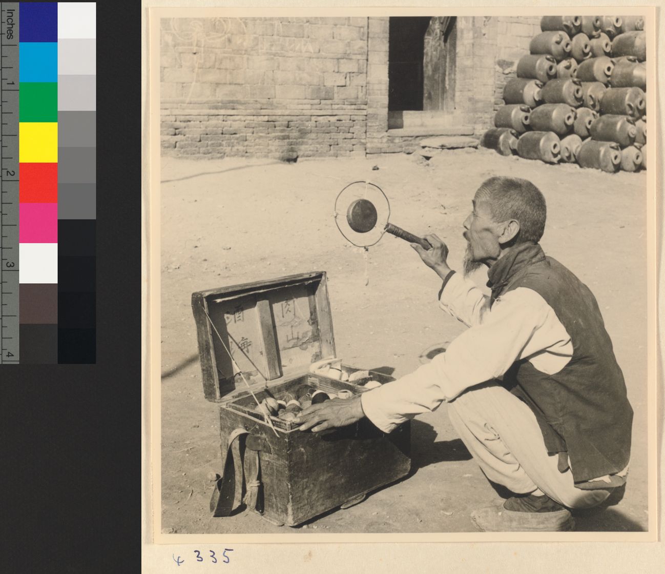 Street vendor with box of sew…