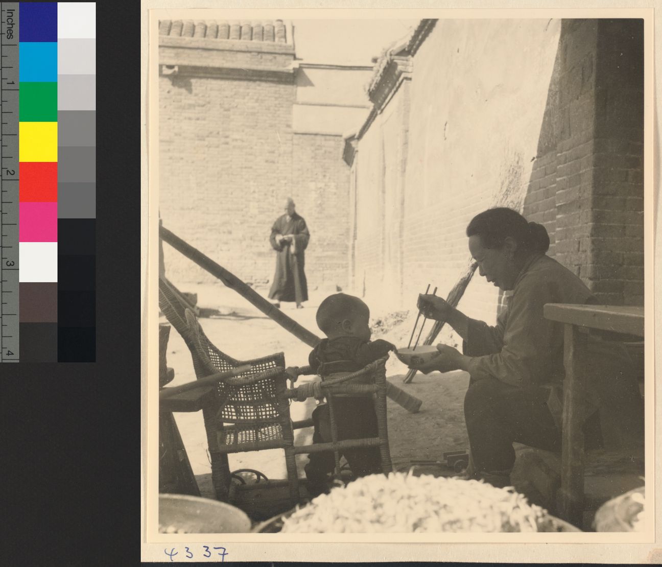 Woman feeding a child in a ba…