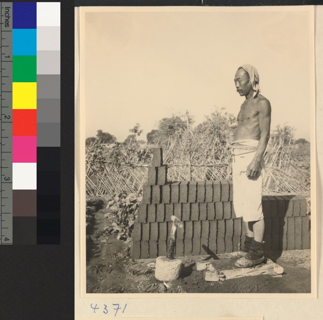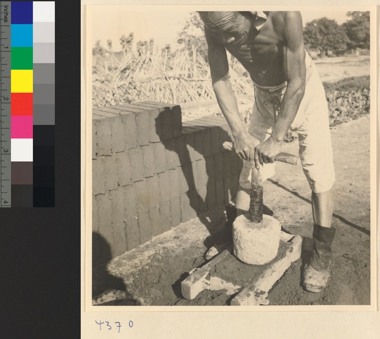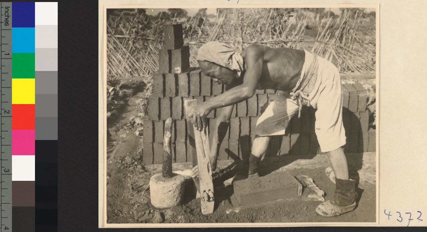 Man tamping down clay in a mo…