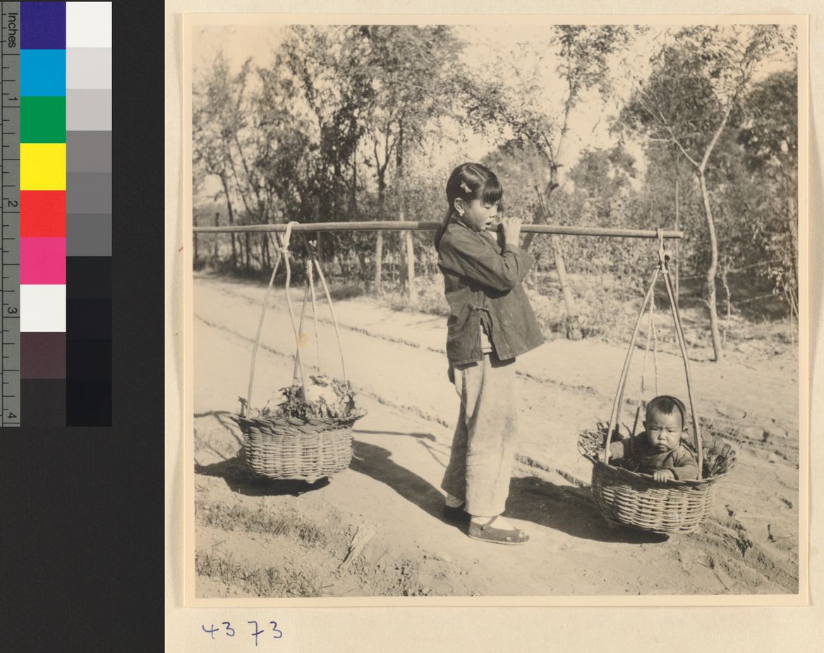 Girl carrying produce and a b…