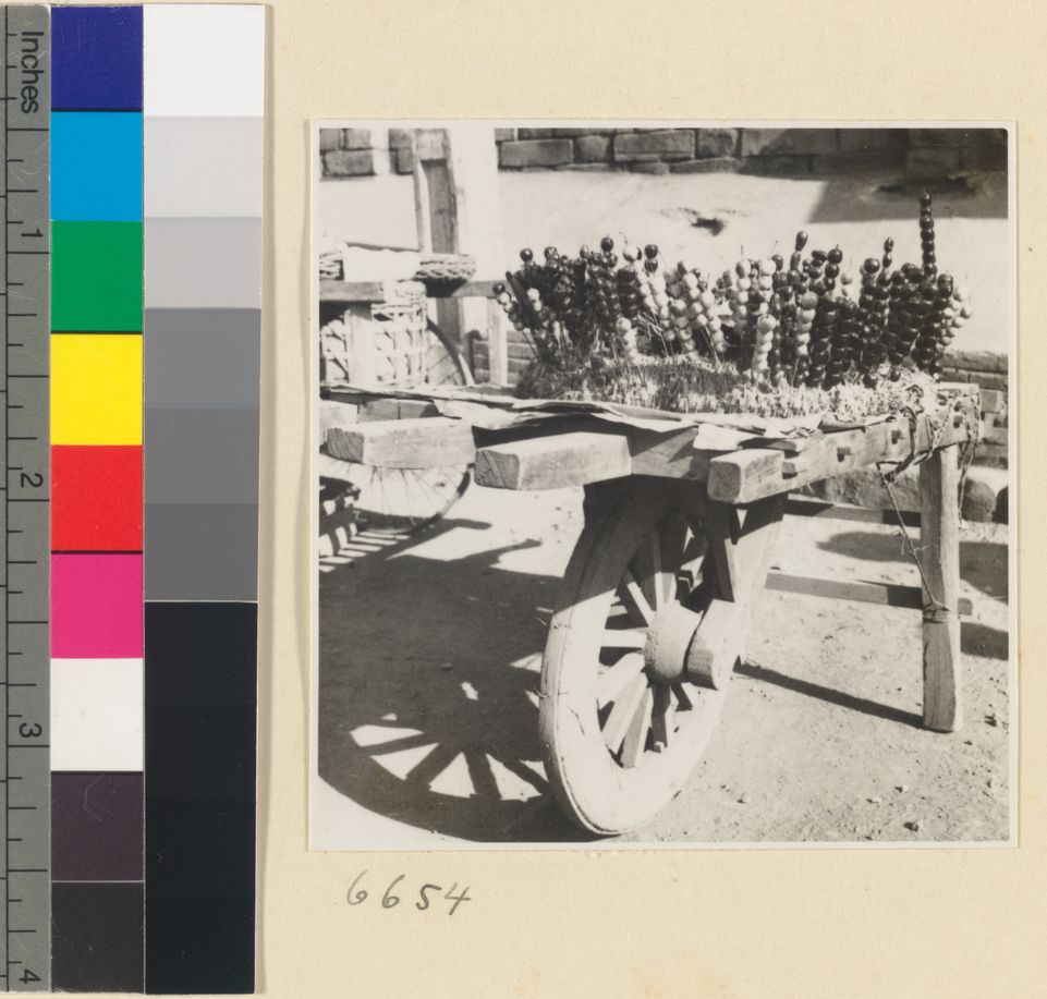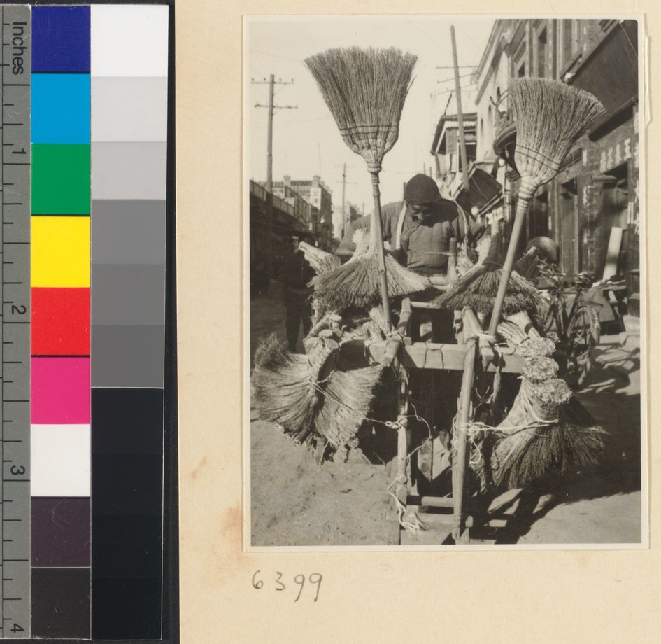 Brush vendor pushing cart wit…