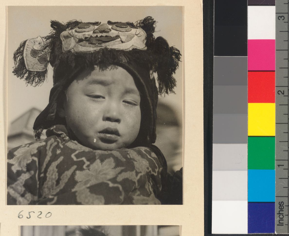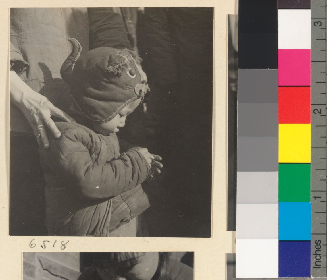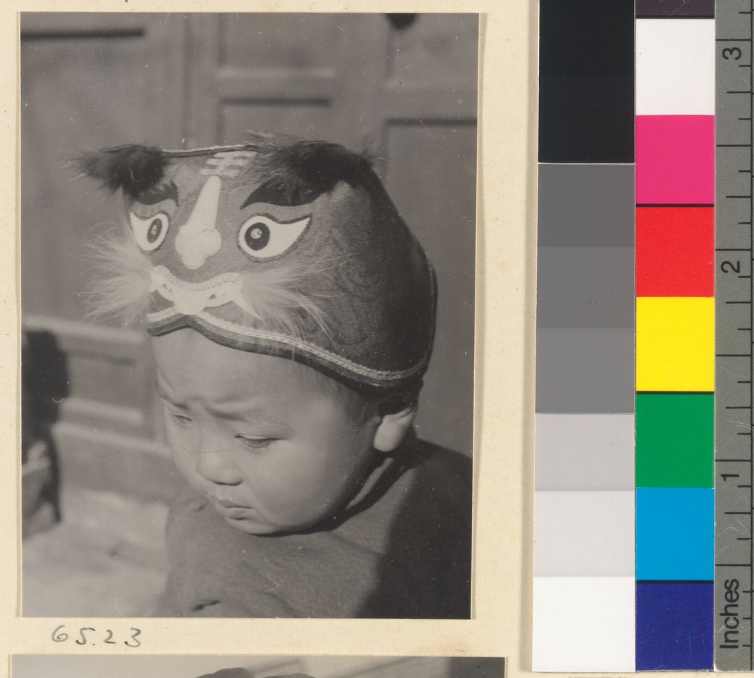 Child wearing a hat with anim…
