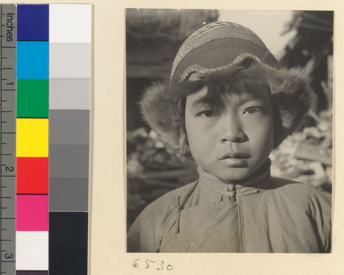 Boy wearing a fur-lined Mongo…