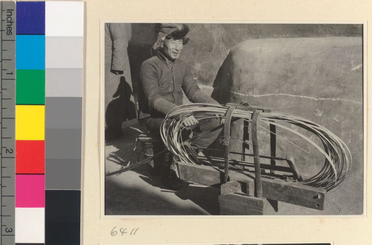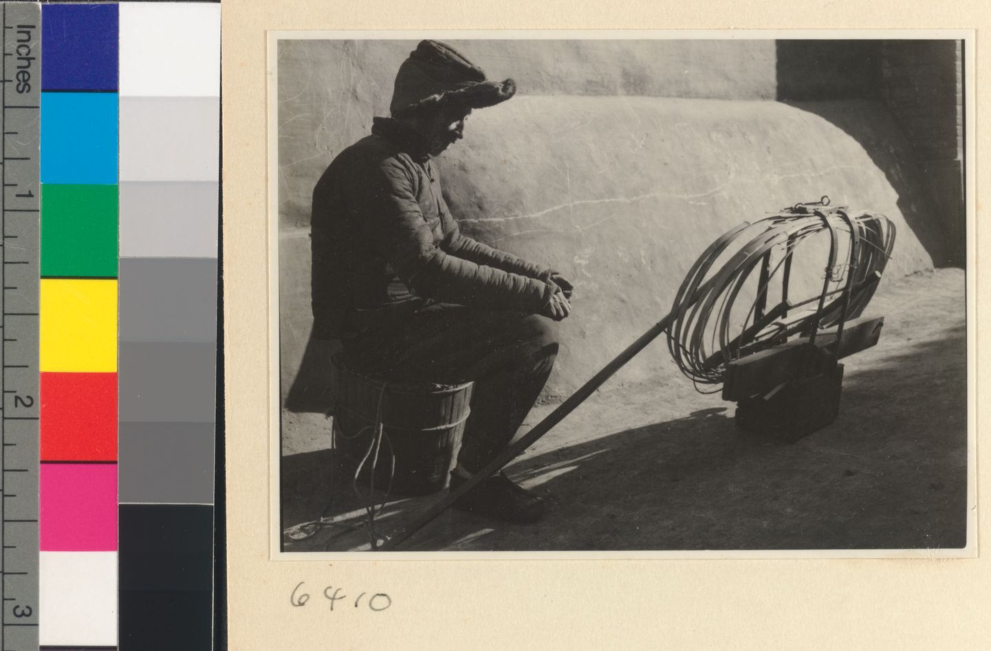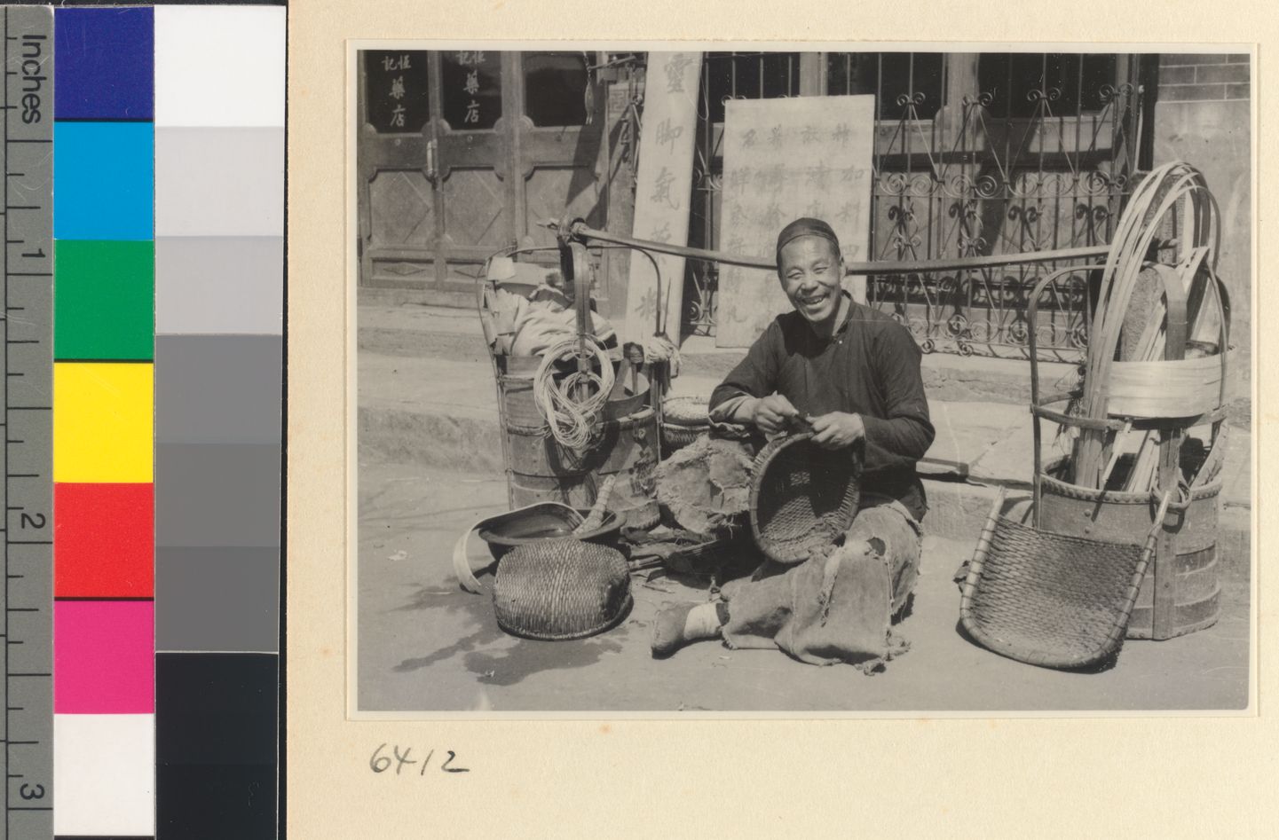 Mat mender seated next to box…