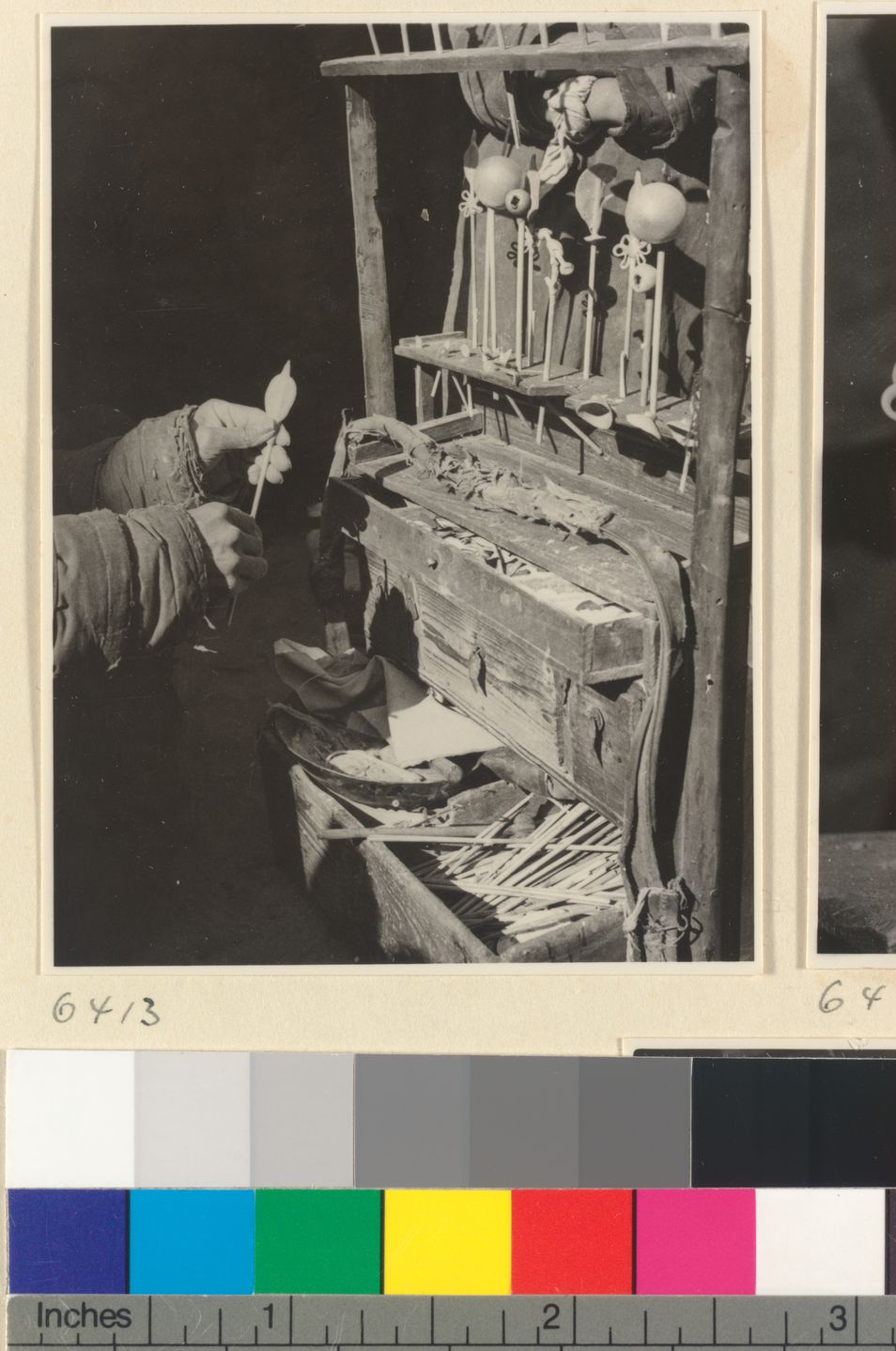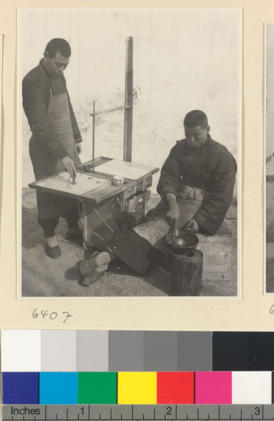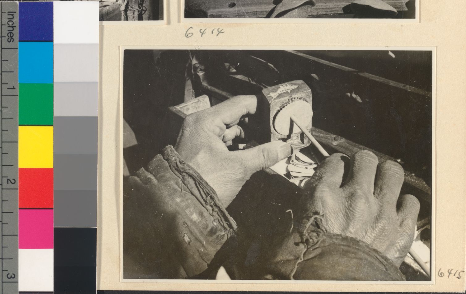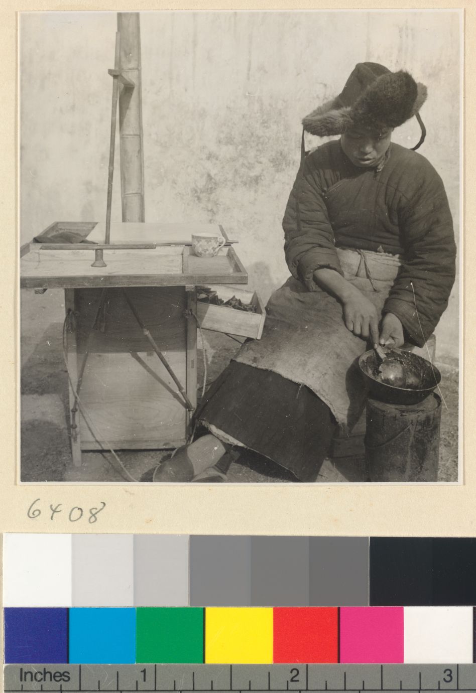 Mat mender seated next to box…