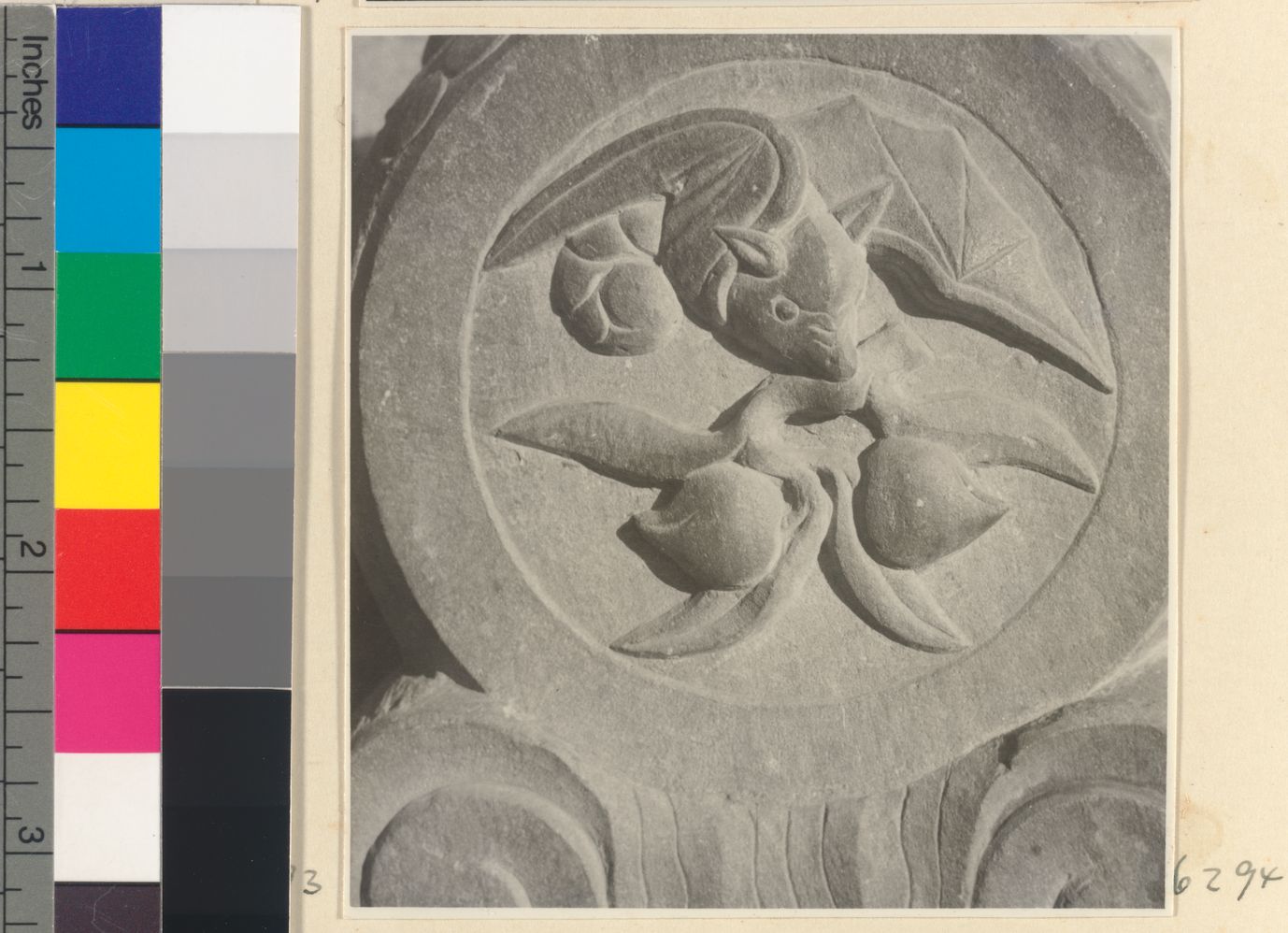 Carved door stone with bat an…