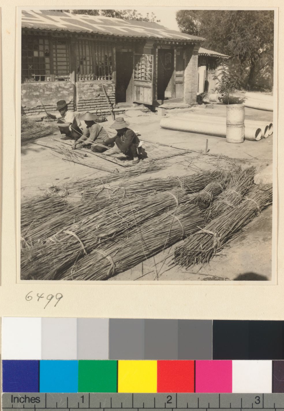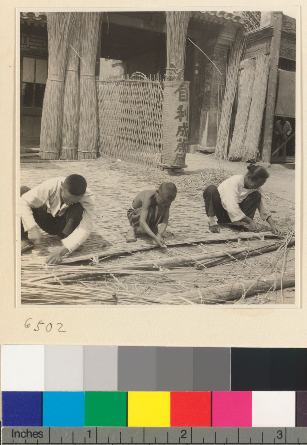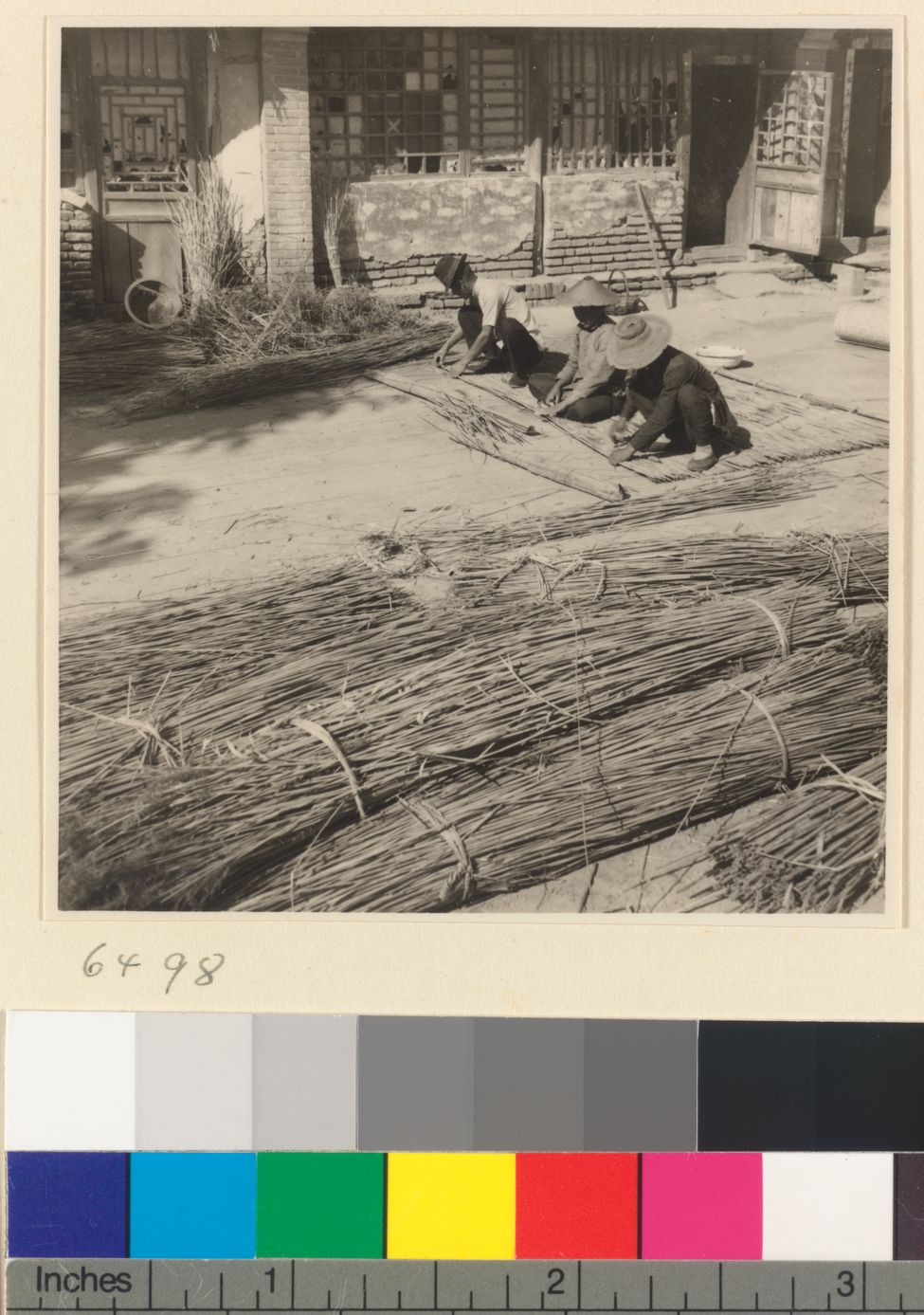 People weaving a mat at a mat…