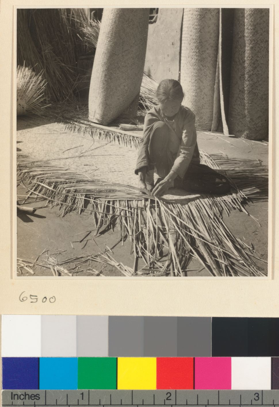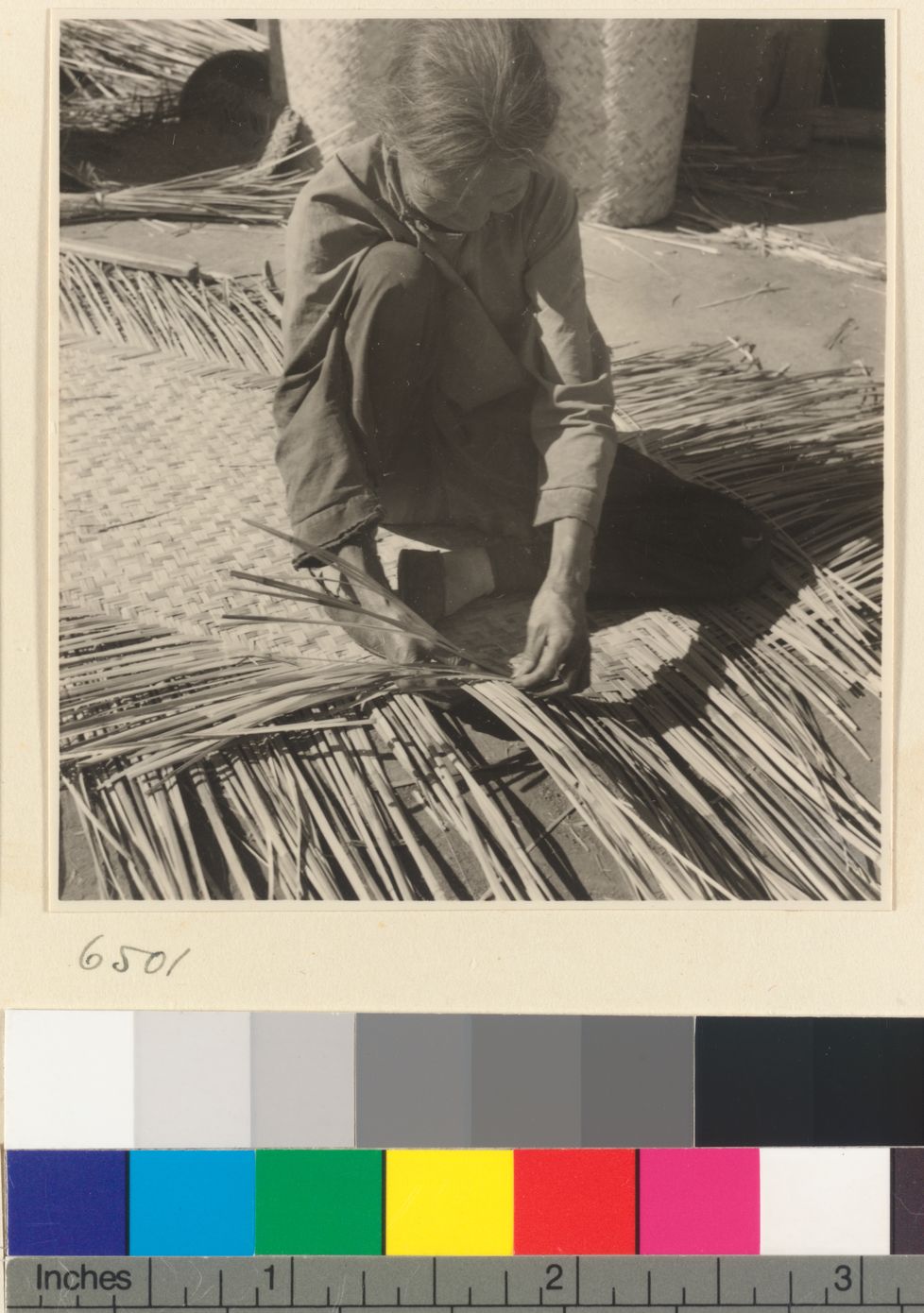 Woman weaving a mat at a mat-…