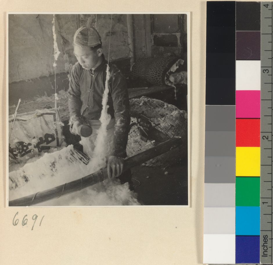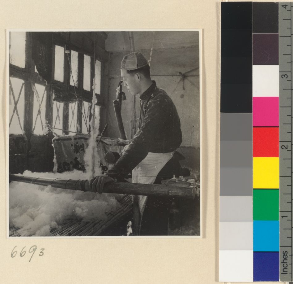 Man preparing cotton for spin…