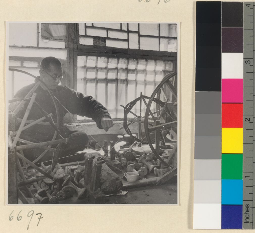 Man spinning cotton in a work…