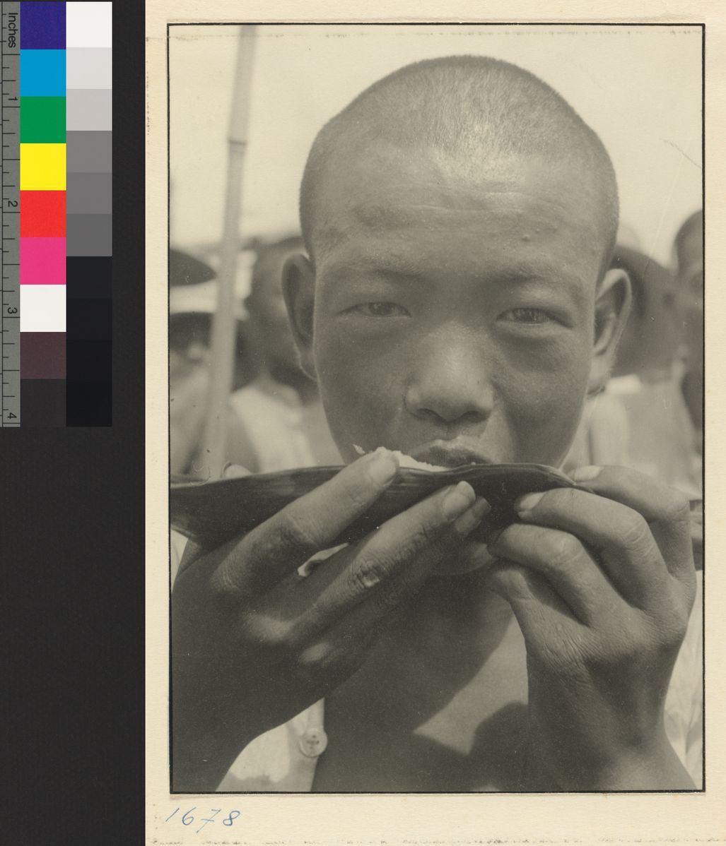 Man eating at a food stand