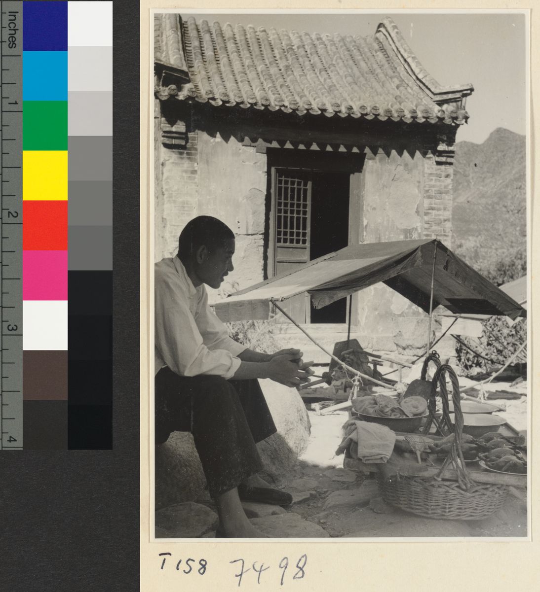 Man sitting next to baskets o…