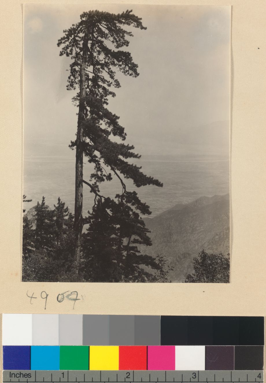 Pine tree and mountain landsc…