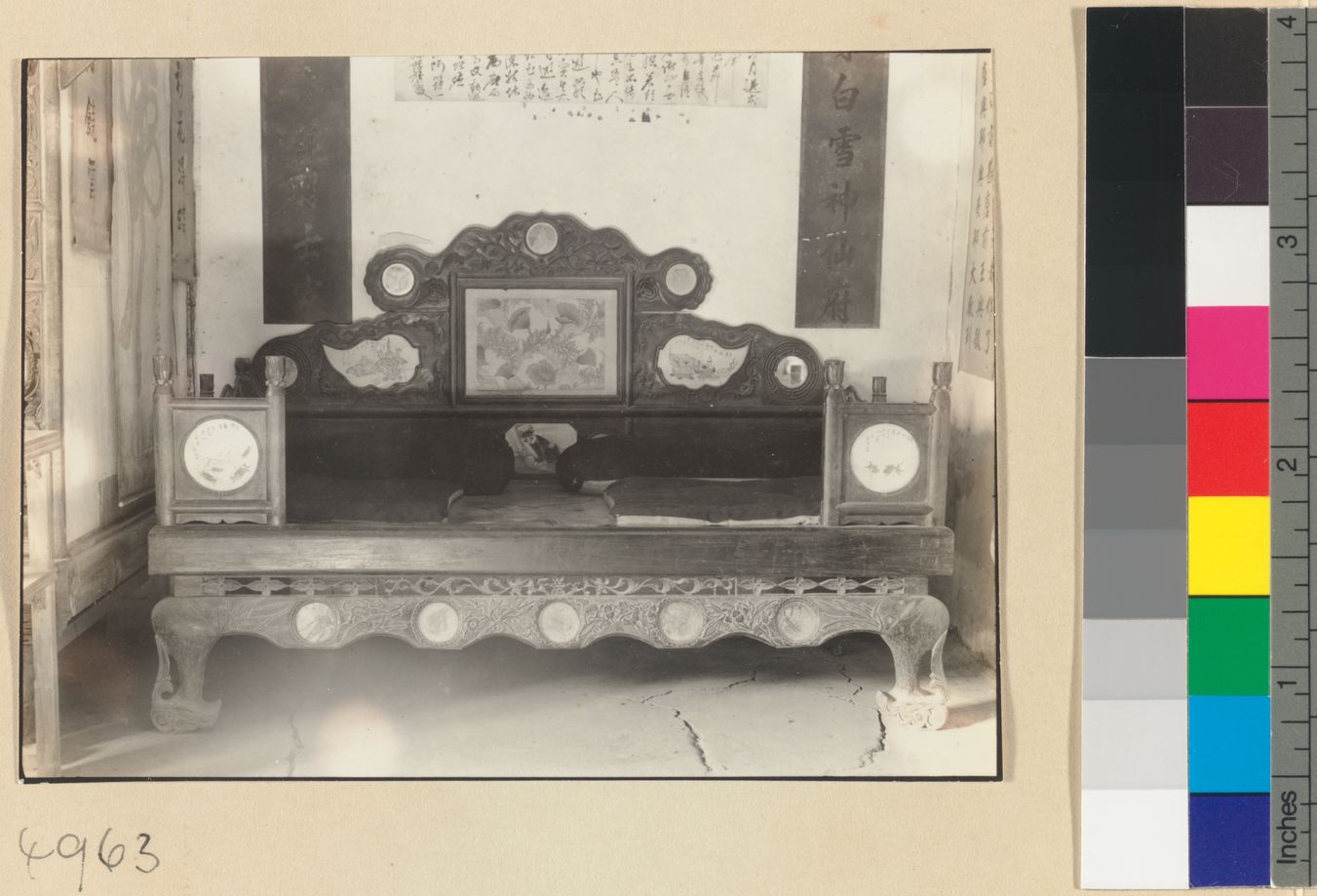 Carved wooden kang with inlay…