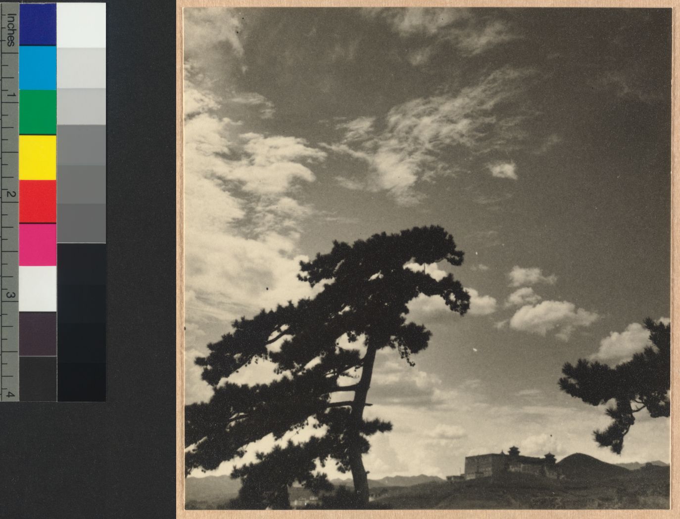 Silhouette of a pine tree and…