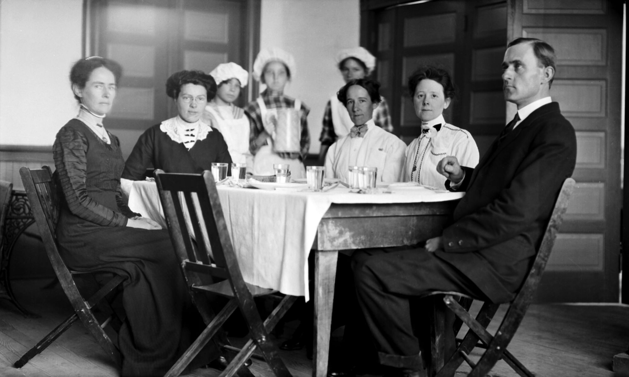 Girls cooking and serving lun…